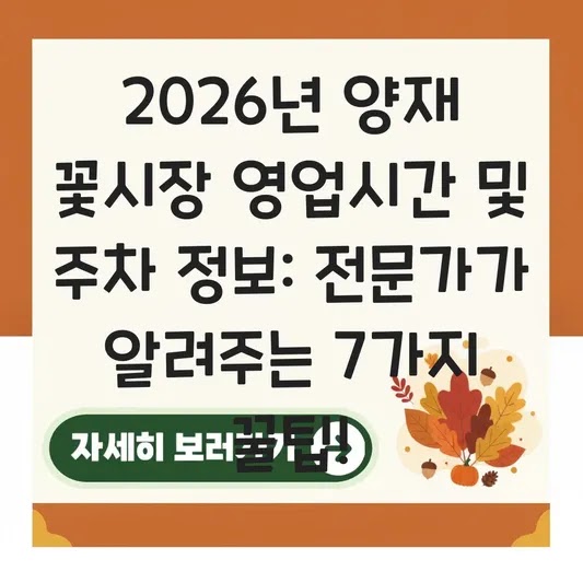 회사 컨설팅을 하다 보면 작은 비효율이 큰 손실로 이어지는 걸 자주 봅니다. 일상도 마찬가지죠. 양재 꽃시장을 방문하려다 복잡한 영업시간과 주차 정보 때문에 계획이 꼬인 경험, 없으신가요? 이 글은 2026년 최신 기준을 바탕으로 여러분의 소중한 시간과 비용을 아껴줄 양재 꽃시장 영업시간 및 주차 정보를 기업의 문제 해결하듯 명쾌하게 정리해 드릴 것입니다.